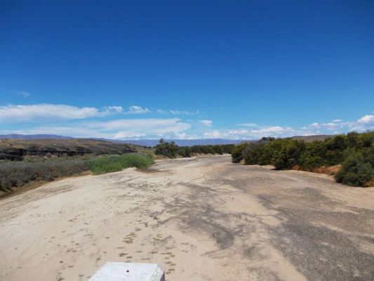 In Ceres kaufen wir noch einiges ein und tanken. Auf dem weiteren Weg legen wir noch eine Essenspause am Straßenrand ein, die mangels Schatten bei 39 ° C kurz ausfällt. Weit ab von der Pad sehe ich Giraffen, erst bin ich unsicher, ob es tatsächlich welche sind, da aber Wildfarmen hier ansässig sind, gehe ich davon aus, dass ich mich nicht getäuscht habe.