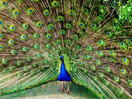 Gleich zu Beginn treffen wir diesen Pfau, sein Federnkleid mit den Augen breitet er schön vor uns aus :