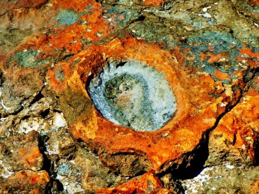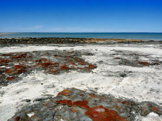 Das ist zwar kein Stromatolith, aber hier kann man gut den hohen Salzgehalt erkennen.