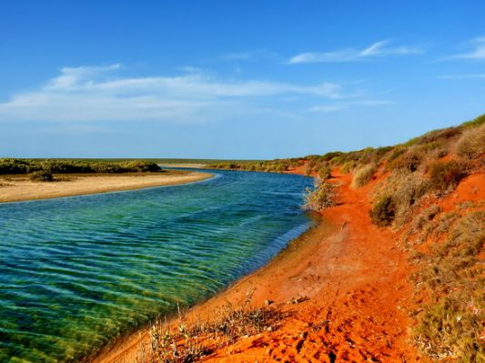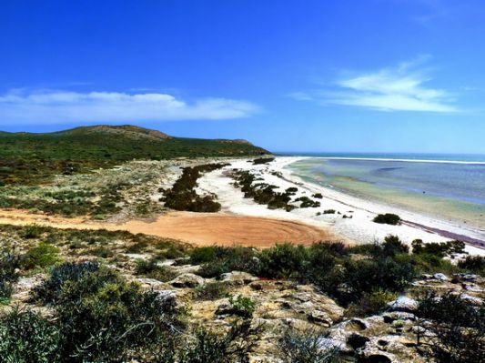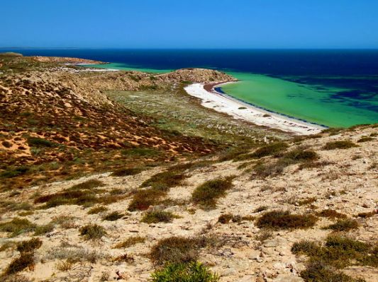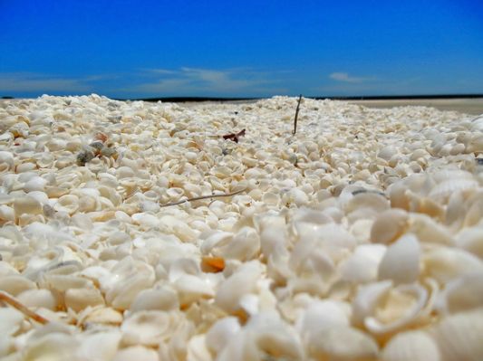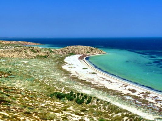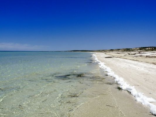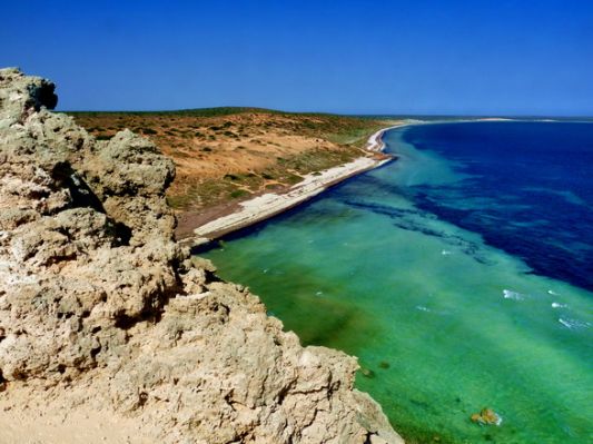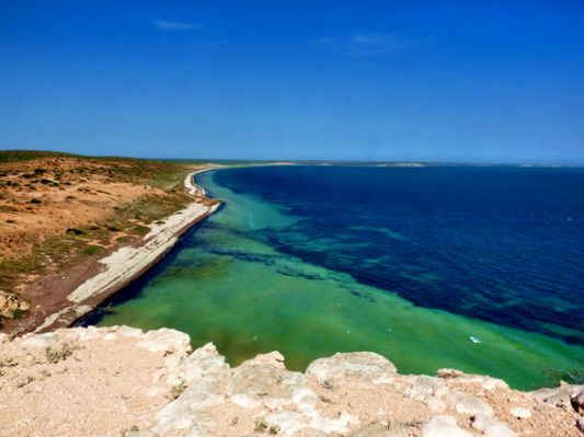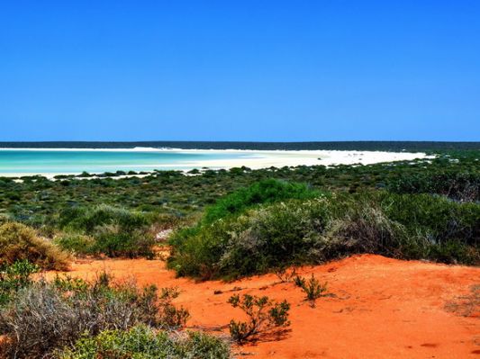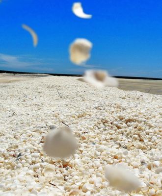 ein ca. 40 km langer Küstenstreifen an der Shark Bay, der aus einer bis zu 10 Meter dicken Schicht aus Milliarden von Herzmuscheln der Art Fragum erugatum besteht.