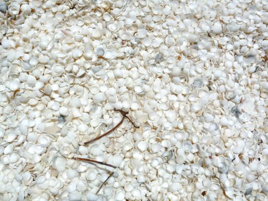 Alles Muscheln. Behaltet eure Sandalen oder Latschen an, denn Barfuß piekst es ordentlich.