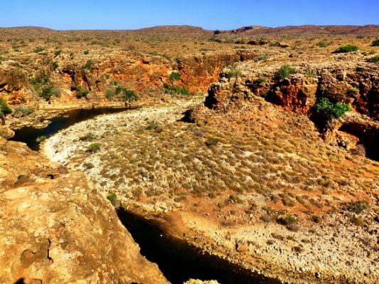 Am Ende der asphaltierten Strasse erreichen wir gegen 14 Uhr 30 den Parkplatz der Yardie Creek Gorge. Als wir aus dem Auto aussteigen bekommen wir kaum Luft. Puh, ist das eine Hitze.