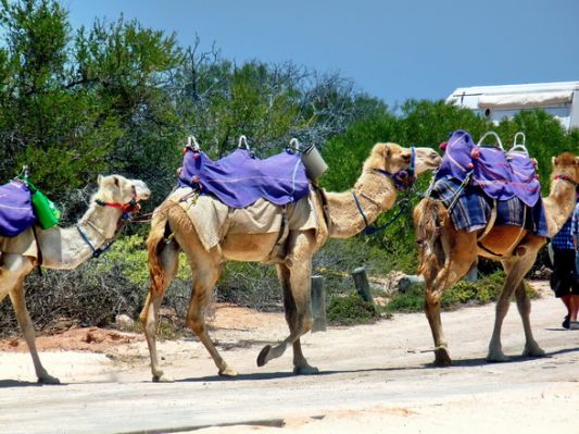 Es gibt hier geführte Kameltouren. Aber nichts für uns!