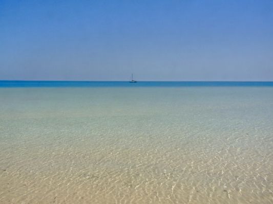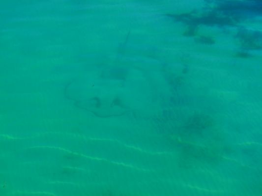 Stattdessen schwimmen wir ein wenig im seichten und niedrigen Wasser, immer mit Blick aufs Meer, ob da vielleicht ein Hai auf uns zukommt.