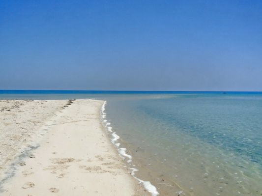 So eine halbe Stunde geht es durch diese Landschaft. Es wird immer heisser und wir trinken zwischendurch unsere sehr warme Cola. Hmmm. hätten wir mal mehr mitgenommen. 2 Kilometer können ganz schön lang sein. Unter einem kleinen Baum machen wir eine längere Pause und rauchen. Nach 45 Minuten sehen wir wieder Strand und Wasser: