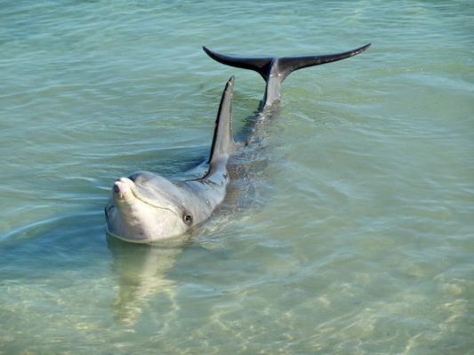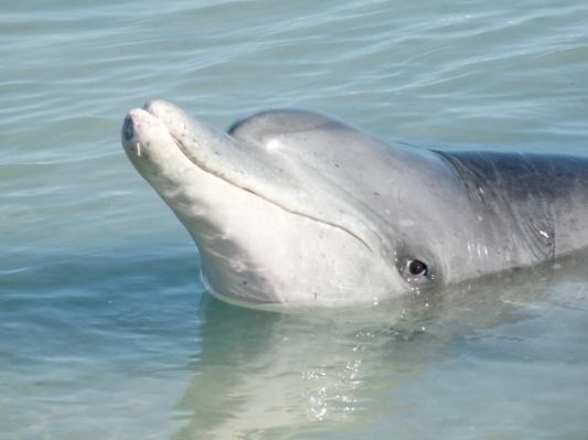 Bei mir kommt keine rechte Begeisterrung auf, obwohl die Delfine so nah am Strand sind. Dann geht die Fütterung los. Die Ranger picken einige Personen (meist Kinder) heraus, die den Delfinen einen Fisch zum Füttern geben dürfen. Nach 5 Minuten ist die Fütterung vorbei und die Delfine schwimmen wieder weg.