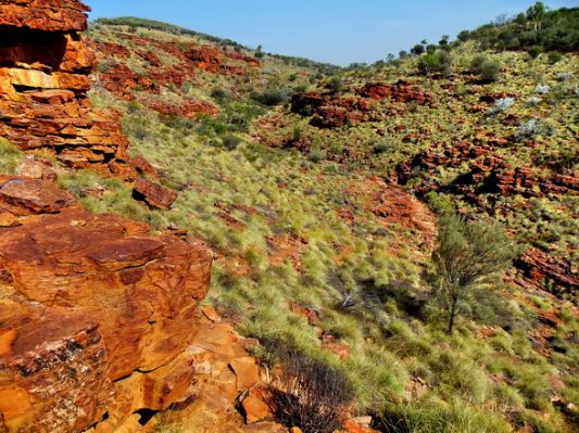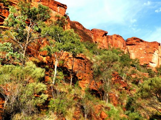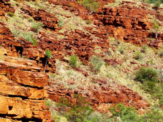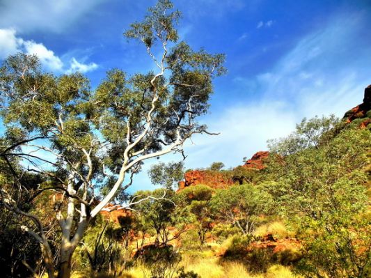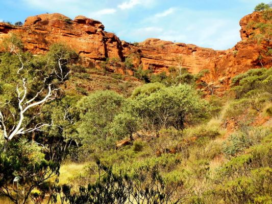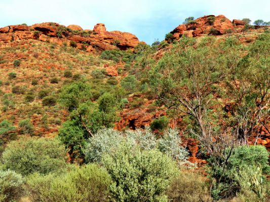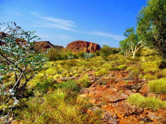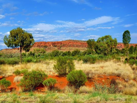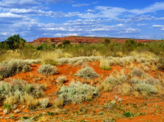 Naja. Irgendwann kommt der Abzweig zum Lasseter Hwy und Richtung Kings canyon. Wir machen ab und zu Rast und geniessen die Landschaft mit der roten Erde.