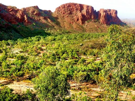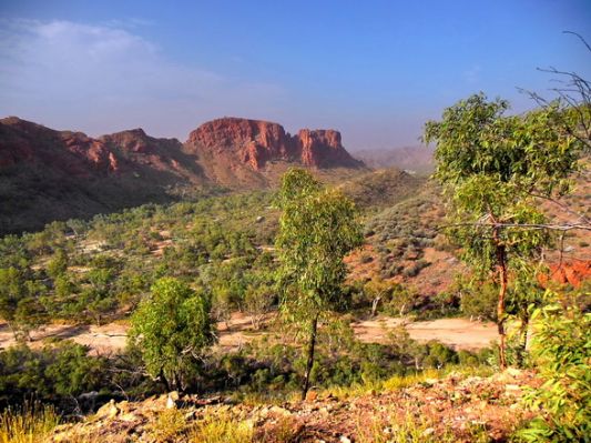 So. Um 4 Uhr 15 klingelt der Wecker. Wir wollen ganz früh los heute, denn wir haben über 5 Stunden Fahrt zum Ziel Kings Canyon vor uns. Wir haben uns aber entschieden noch die East MacDonnell Ranges einen Besuch abzustatten. Endziel ist die Trephina Gorge. Macht zusammen ca. 7,5 Stunden Fahrt.