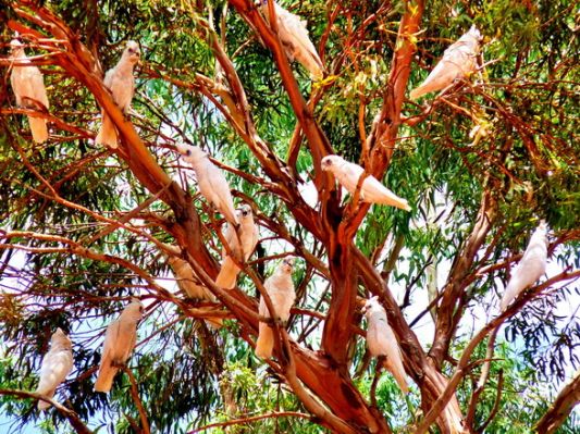 Hier sehen wir paar Vögel und Papageien oder kakadus?? und nen Emu.