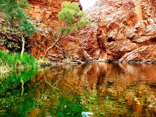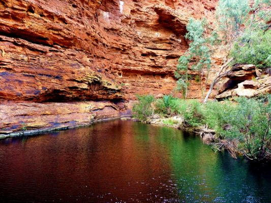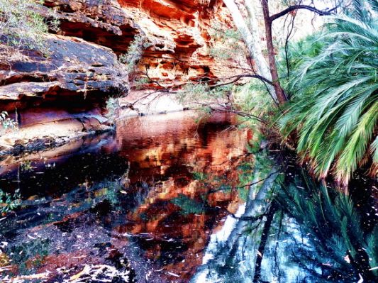 Und dann erreichen wir diese kleine Oase und ganz ehrlich. Schöner kann es auch im Paradies nicht sein. Und Ilona, ich bin ehrlich. Mir kamen die Tränen an diesem wunderschönen Ort. Ich hatte so gezweifelt, ob der teure Ausflug ins Outback richtig war. Mit der vielen Fahrerei, dem wolkenverhangenen Himmel am Ayers Rock und und und.