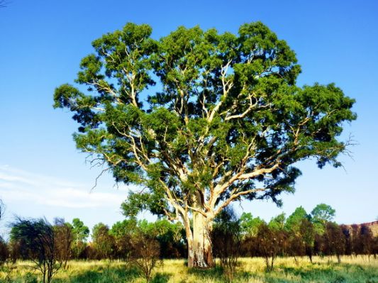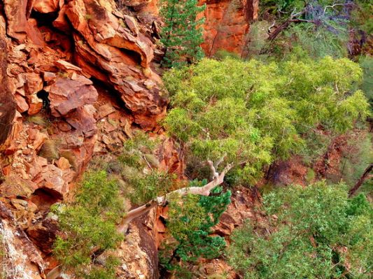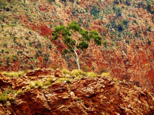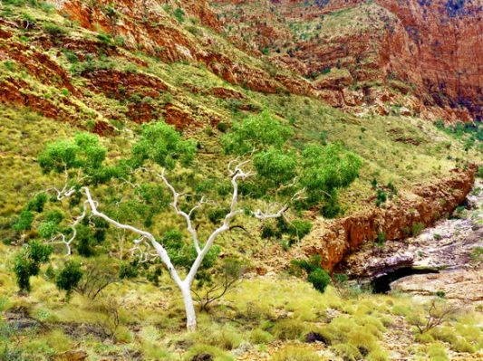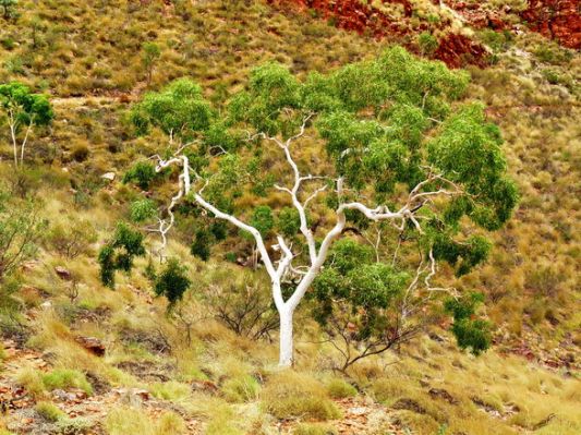 Dieser Ghost Gum Tree hängt schräg den hang herunter, was auf dem Foto gar nicht so zu sehen ist: