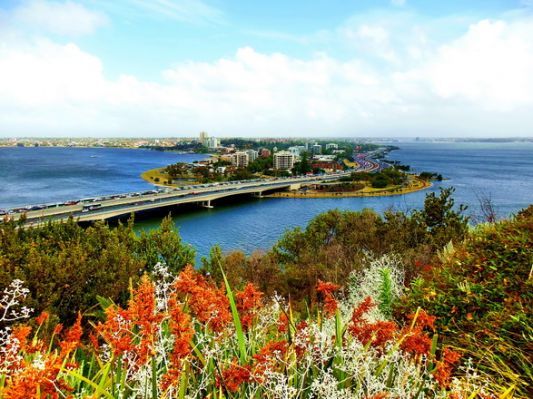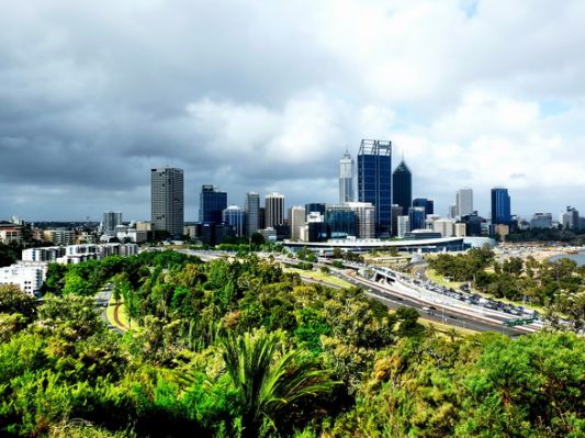Dann erreichen wir den Botanischen Garten, der allerdings nicht gerade farbenprächtig daherkommt. Allerdings hat man von hier eine super Aussicht auf die Skyline und den Swan River: