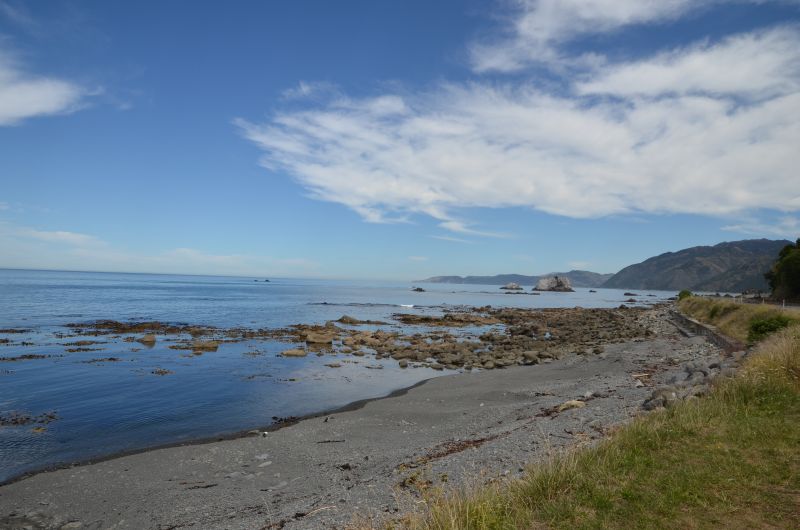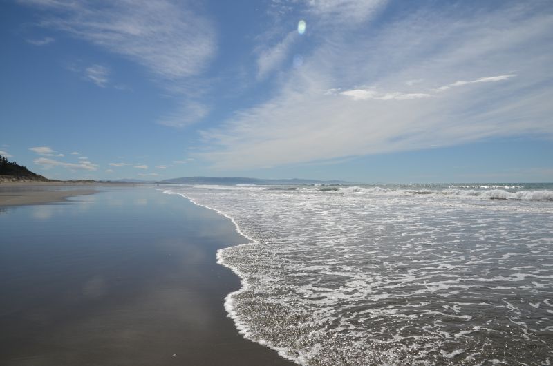 Wir fahren dann nach Norden auf der SH1 aus Christchurch raus, wollen wir doch noch die knapp 200km bis Kaikoura fahren. Die Müdigkeit geht, trotzdem fahren wir gemütlich und mit Pausen. Bei Woodend biegen wir zum Strand ab, erfreuen uns an Sonne und dem Klang der Wellen und genießen unseren Lunch. Endlich wieder Urlaub.
