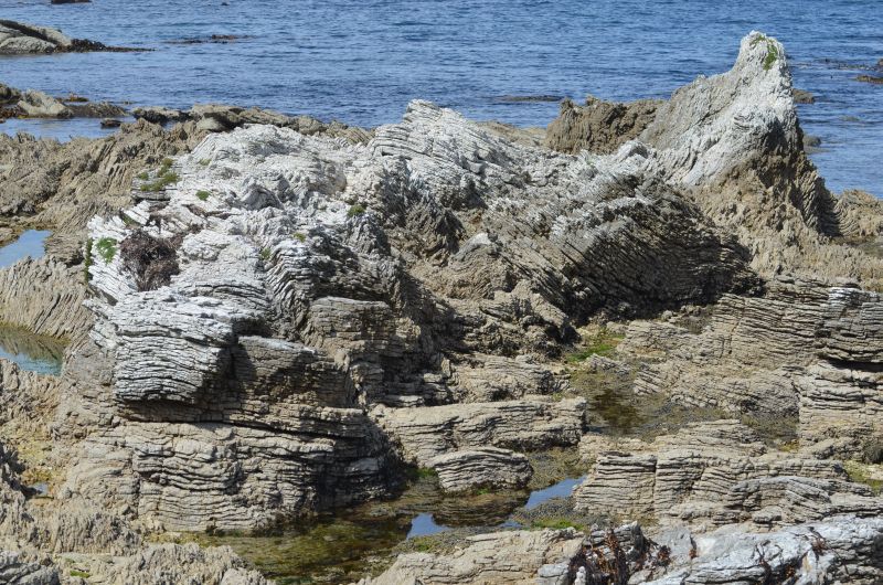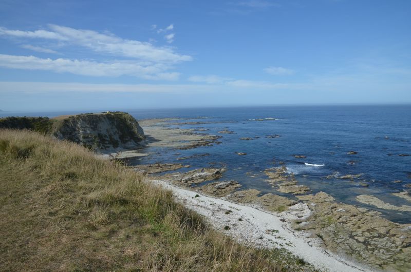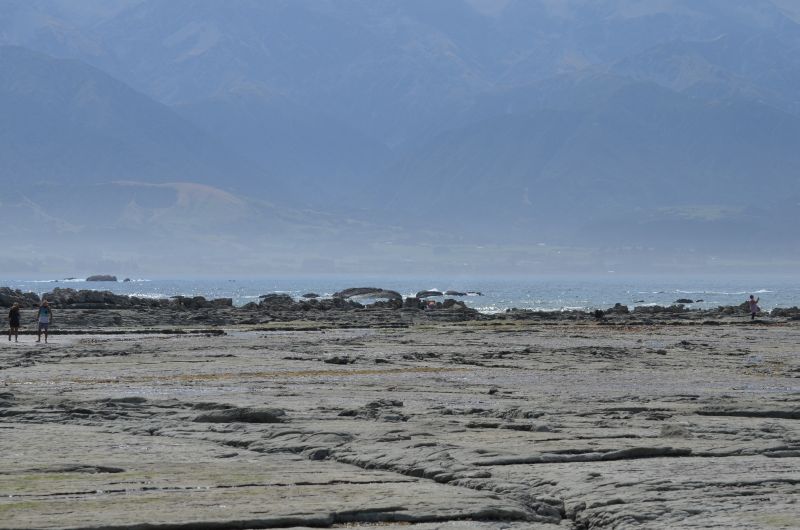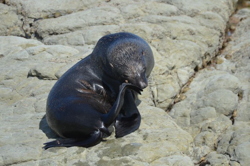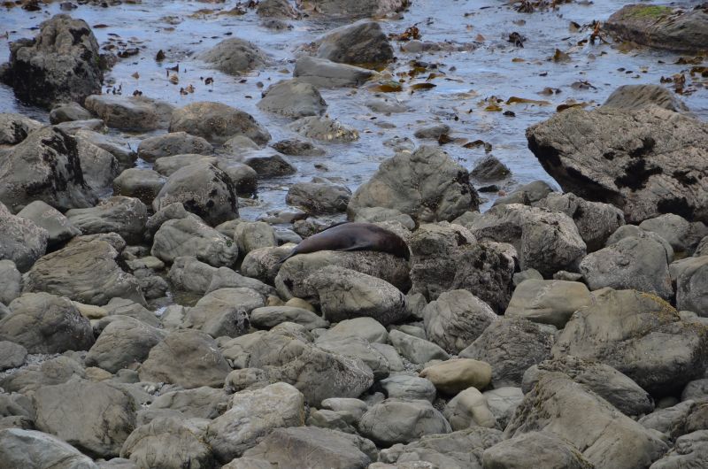 Deshalb fahren wir am Mittag nach der Tour zuerst zur Unterkunft und legen eine Stunde die Beine hoch. Danach geht es zum Point Kean, einem Aussichtspunkt bei Kaikoura von dem der Kaikoura Cliff Walk startet. Man kann aber bei Ebbe auch unterhalb der mächtigen Klippen direkt am Wasser entlanglaufen. Über Stock und Stein – ein Teil der Steine sieht aus wie die Pancake Rocks an der Westküste – geht es an einigen Fur Seals (Robben) vorbei. Manche präsentieren sich schön auf den Steinen, andere halten sich mit ihrem kleinen Nachwuchs lieber im Hintergrund. Nach einiger Zeit kürzen wir auf direktem Wege hoch auf die Klippen ab und laufen oben rum zurück, tolle Aussichten im Dutzend.