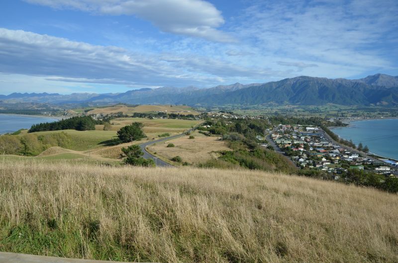 Die Straße windet sich dann erst durchs Gebirge, dann die letzten 20km direkt an der Küste entlang und bietet immer wieder spektakuläre Blicke für die wir auch gerne immer wieder anhalten. In Kaikoura fahren wir kurz zum örtlichen Aussichtspunkt und dann zu Ruth’s B&B wo wir die nächsten zwei Nächte verbringen. Wir quatschen kurz, räumen aus und planen den morgigen Tag – dann geht es um 17:30 für einen langen Schlaf in die Federn.