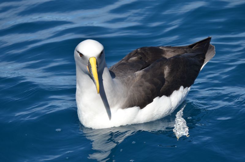 Dort besteigt man das Boot und düst 15 Minuten über das Meer bis zu den Felsen auf denen die Seals leben. Dabei ist die Überfahrt schon fast das Highlight selber, kreuzen doch mehrfach Schwarzdelphine unsere Bahn, die in kleinen Gruppen direkt vor dem Boot ihre Kunststücke zeigen oder sich in der Bugwelle treiben lassen. Auch ein Little Blue Penguin (Zwergpinguin) lässt sich sehen, und putzt genüsslich sein Gefieder.
