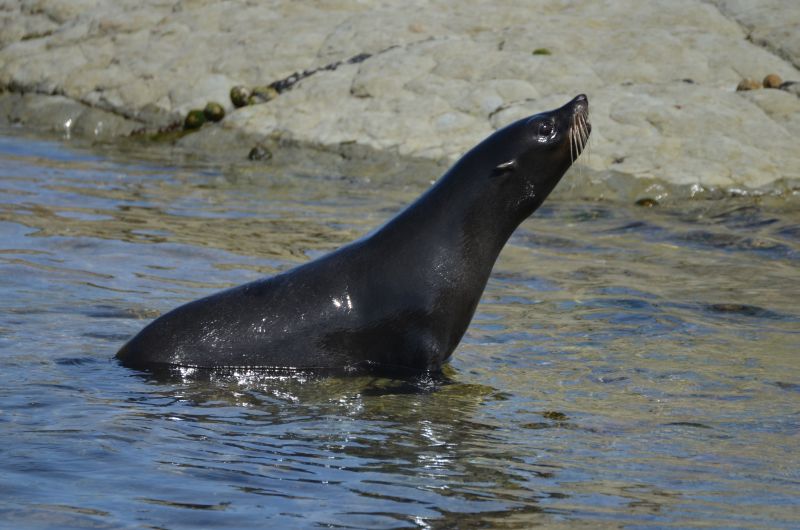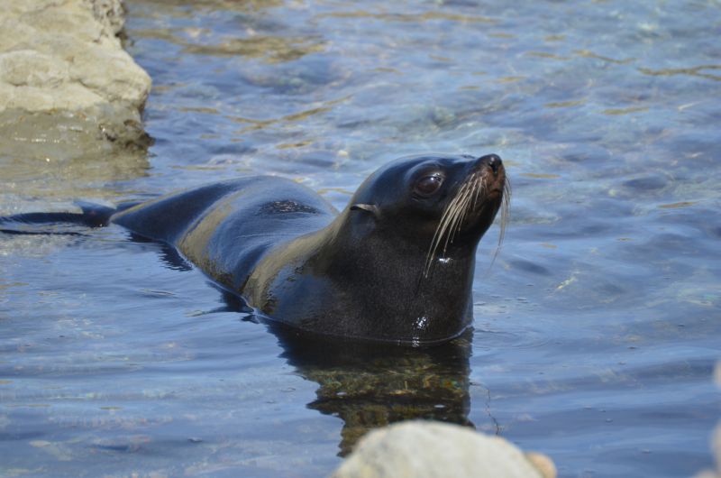 Am Ziel angekommen geht es dann ins Wasser, man schwimmt zu den Felsen hin, soll sich ruhig ins Wasser legen und beobachten was die Tiere machen. Also kein Anlocken, wildes Rumgespritze oder ähnlich. Trotzdem ermöglicht die Tour uns tolle Einblicke. Neben den Seals, die unter einem und neben einem herumschwimmen, teilweise nur mit einer Handbreit Abstand, kann man auch verschiedene Fische unter Wasser beobachten. Nach einer Stunde im Wasser geht es gut durchgekühlt wieder zurück und unter eine heiße Dusche.