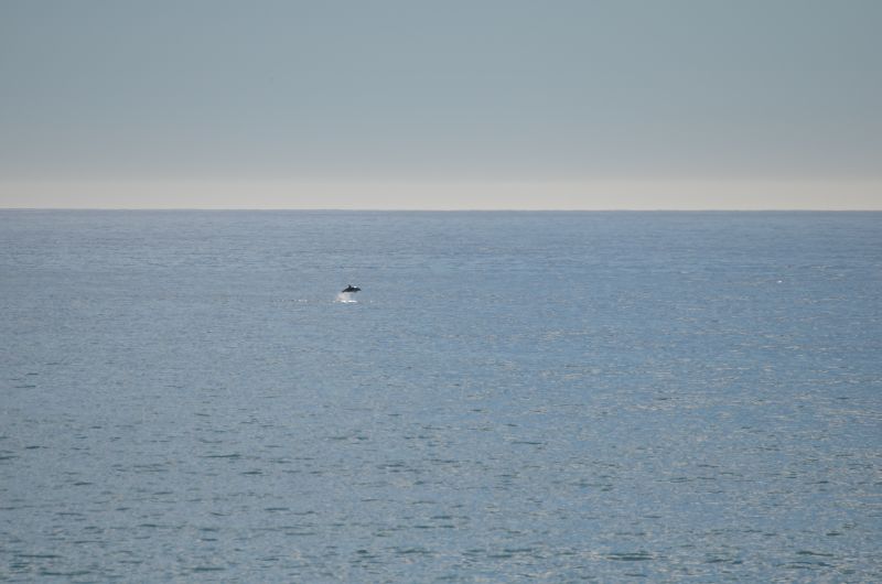 Und genau wie am Morgen als wir auf die Waltour gewartet haben, zeigen sich in der Bucht vor Kaikoura immer wieder kleine Schwarzdelphine, die verspielt einzeln und in Gruppen umherspringen.