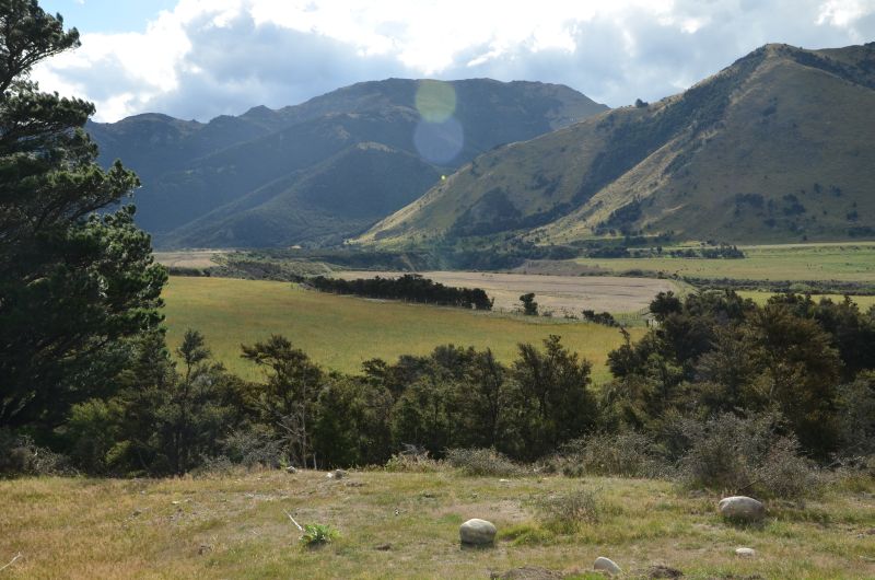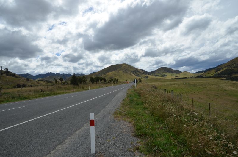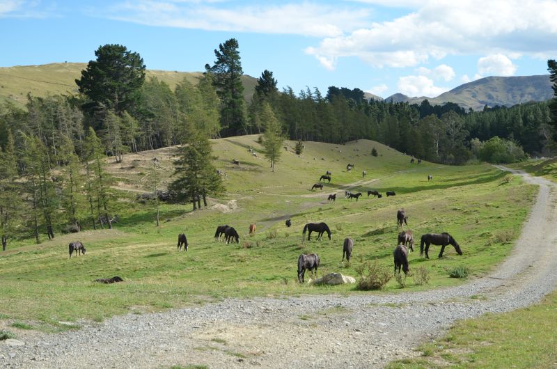 Wir beschließen danach den Tag sehr ruhig angehen zu lassen, fahren erstmal zum Kaikoura Seafood BBQ und teilen uns zu Mittag einen Crayfish Fritter. Dann machen wir uns im gemütlichen Cruising-Tempo auf den Weg nach Hawarden. Die Inland Scenic Route von Kaikoura nach Waiau bietet viele spektakuläre Mittelgebirgsszenerien und ist kaum befahren. In Hawarden, bzw. 15km Schotterwege außerhalb, sind wir die nächsten Nächte bei Corinna, einer Freundin aus Deutschland, die sich vor einigen Jahren auf den Weg nach Neuseeland gemacht hat. Sie arbeitet bei Alpine Horse Safaris, einem Unternehmen das geführte Trekkingtouren mit Pferden durch das Backcountry anbietet. Nebenbei bewirtschaften die Inhaber Lawrie und Jenny noch eine 900 Hektar große Farm mit 2.500 Schafen und 70 Pferden. Diese liegt total einsam und abgeschieden, aber in wunderbarer Landschaft. Eben auch im Backcountry.