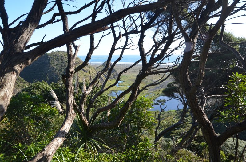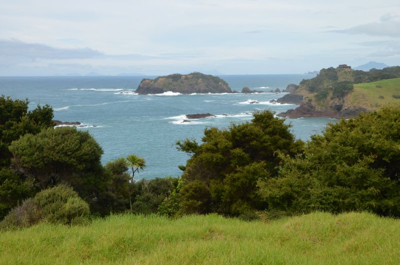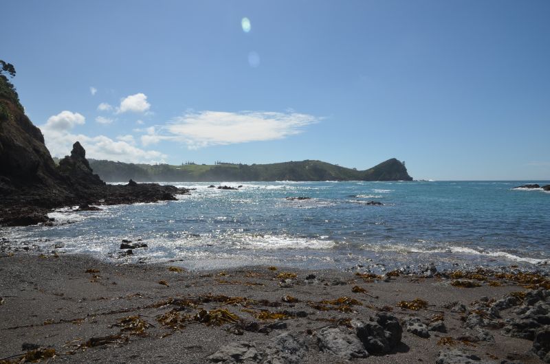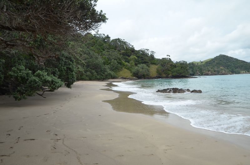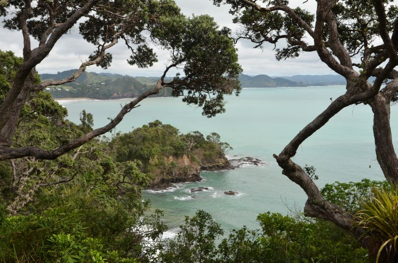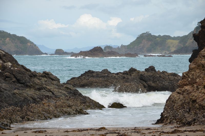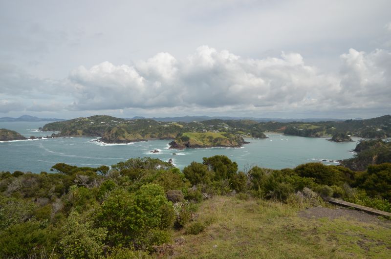 Wir suchen uns dort noch den Tapeka Point Trail raus, einen kurzen aber knackigen Anstieg zu einer Stelle auf der früher ein Maori Pa (Palisades, eine Art Fort) stand. Von dort oben hat man einen tollen Rundumblick über die Bay of Islands. Nach dem Abstieg wandern wir noch ein wenig über den nahen Strand und schauen uns auf den Felsen nach Tidepools um.