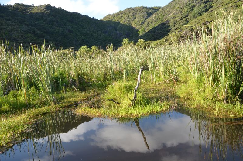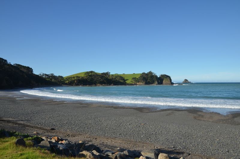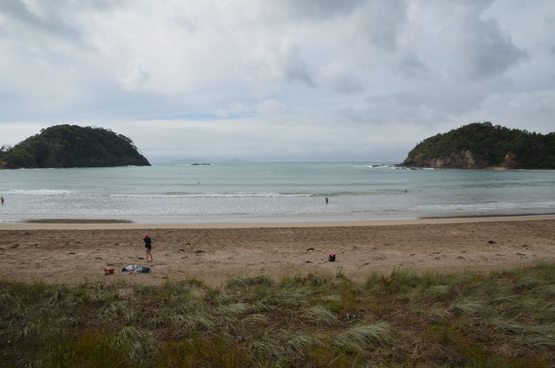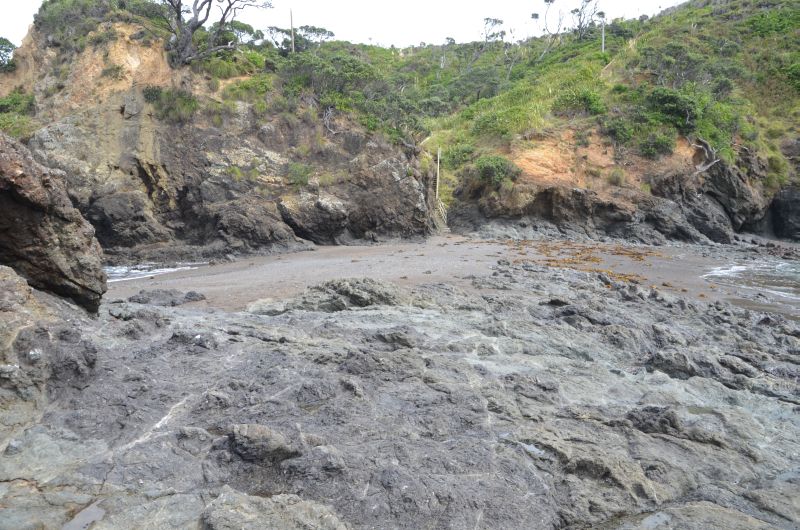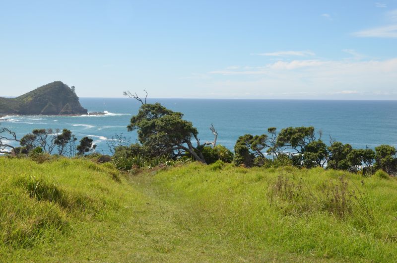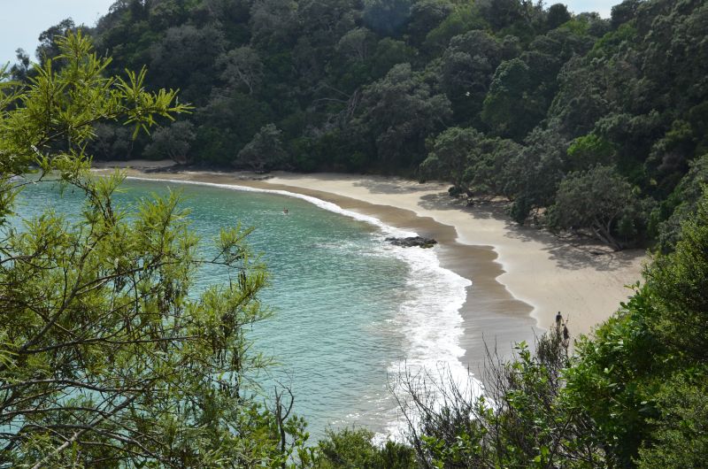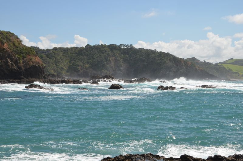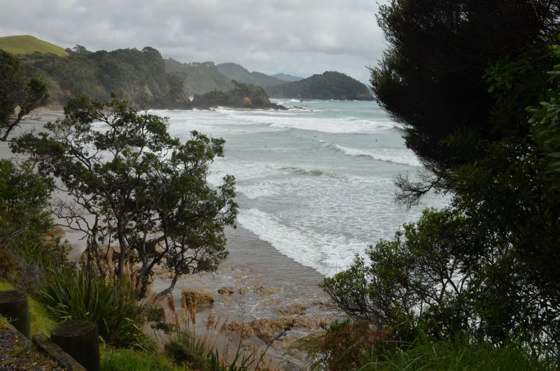 Wir suchen uns dort noch den Tapeka Point Trail raus, einen kurzen aber knackigen Anstieg zu einer Stelle auf der früher ein Maori Pa (Palisades, eine Art Fort) stand. Von dort oben hat man einen tollen Rundumblick über die Bay of Islands. Nach dem Abstieg wandern wir noch ein wenig über den nahen Strand und schauen uns auf den Felsen nach Tidepools um.