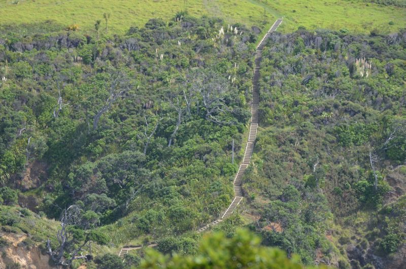 Abendessen gibt es dann in Kerikeri im Ziezo, lecker Snapper und Spaghetti mit Gemüse-Carbonara. Wieder zurück auf Aroha Island versuchen wir erneut unser Kiwi-Glück. Mit roten Stirnlampen schleichen wir gegen halb zehn knapp eine Stunde über das Gelände: Nichts. Gegen halb 12 raffen wir uns dann nochmal auf und tatsächlich, nach gut 20 Minuten raschelt es links im Unterholz und im fahlen roten Licht pickt ein dicker Kiwi im Laub nach Würmern. Das geht für gut eine Minute, dann nimmt er uns wahr und verdrückt sich. Ein tolles Erlebnis.