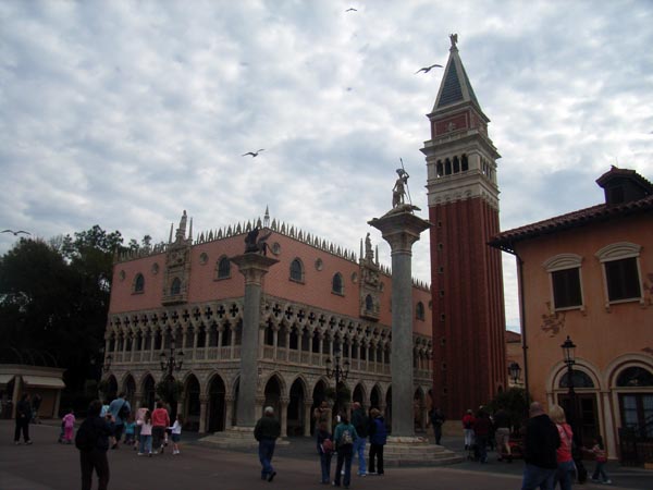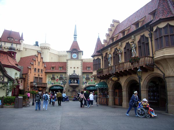 In der Zwischenzeit hatte es auch aufgehört zu regnen, so dass wir uns den langen Weg um den See durch das World Showcase wagten. Um Epcot für Kinder interessanter zu gestalten, gibt es in jedem Land einen teilweise sehr versteckten Stand, an dem man einen Stempel und einen mehr oder weniger landestypischen Anhänger bekommt. Hat man alle elf Länder am Ende geschafft, gibt es ein kleines Poster als Geschenk. Für Disney-Verhältnisse schon fast revolutionär.