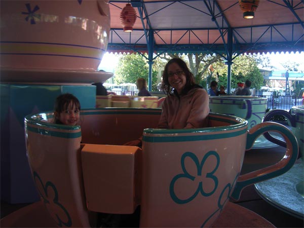 Schon am Eingang wurde offensichtlich, dass die Schlangen heute länger werden würden als die Tage zuvor. Deswegen konzentrierten wir uns zunächst auf Fantasyland, wo die Attraktionen für die kleineren Kinder konzentriert sind. Nach ein paar Runden mit den Teetassen und dem fliegenden Dumbo, Schneewittchen und Cinderellas Karussell fanden wir dann auch die erste Prinzessin, auf die unsere Tochter erstaunlich geduldig wartete, um ein Foto zu erhaschen.