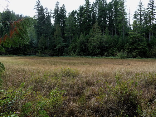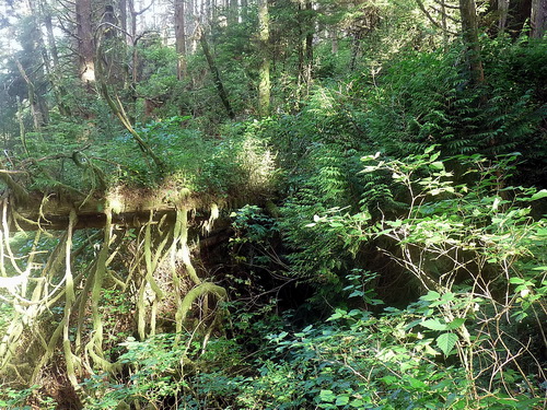 Die Bärentour beginnt ja erst um 2:45 Uhr. Also müssen wir die Zeit bis dahin noch rumkriegen!! Wir fahren Richtung Tofino und halten zunächst beim Willowbrae Trail. Der Trail ist 2,4km lang und führt durch Wald. Bei dem schlechten Wetter sind wir allein und es ist recht unheimlich hier, da am Trailbeginn Schilder auch vor Bären und Wölfen warnen!!