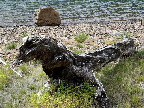 Am See sehen wir dieses geschöpf aus Holz. Sieht aus wie eine Eidechse, oder?