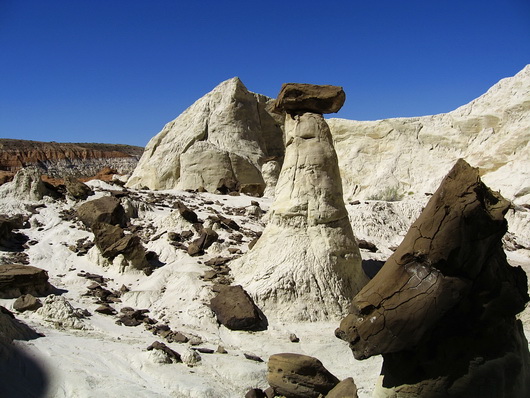 Einmal umdrehen und da sind die weißen Hoodoos: Mal dicker