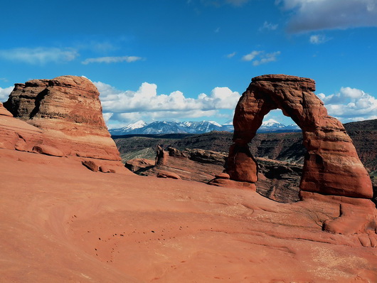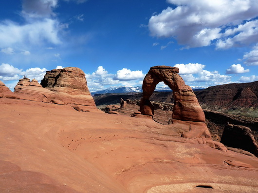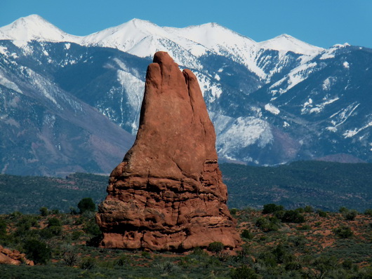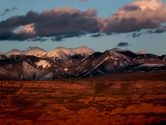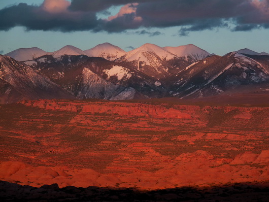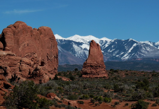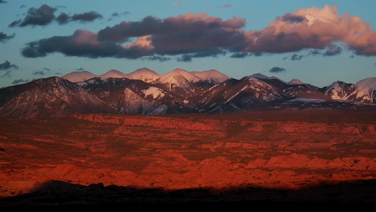 Auch der Hintergrund mit den schneebedeckten La Sal Mountains ist phantastisch.