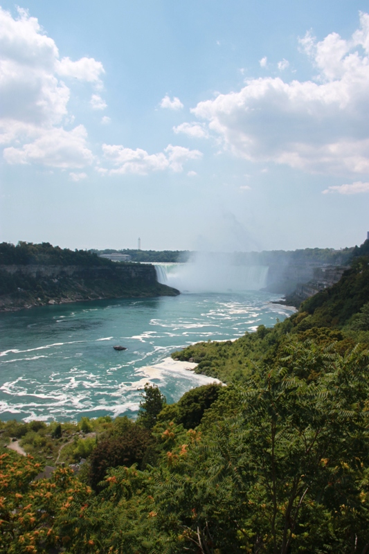 Doch erst direkt an den kanadischen Fällen, nur einen Meter von den Fällen entfernt, bekommt man eine Ahnung davon, wie viel Wasser hier runter rauscht. Es ist wirklich beeindruckend und auf komische Weise hypnotisierend.