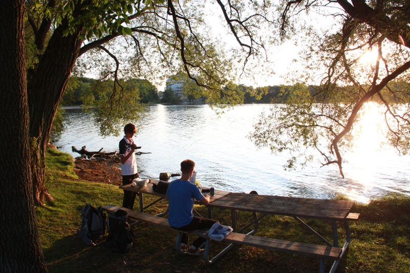 Zum ersten Mal habe ich wirklich das Gefühl in Kanada zu sein, während ich mich in der Metropole Toronto noch oft daran erinnern musste. Der freundliche Besitzer hängt eh! an die meisten seiner Sätze und ein junger Mann fragt mich nach einem Loonie für die Maschine.