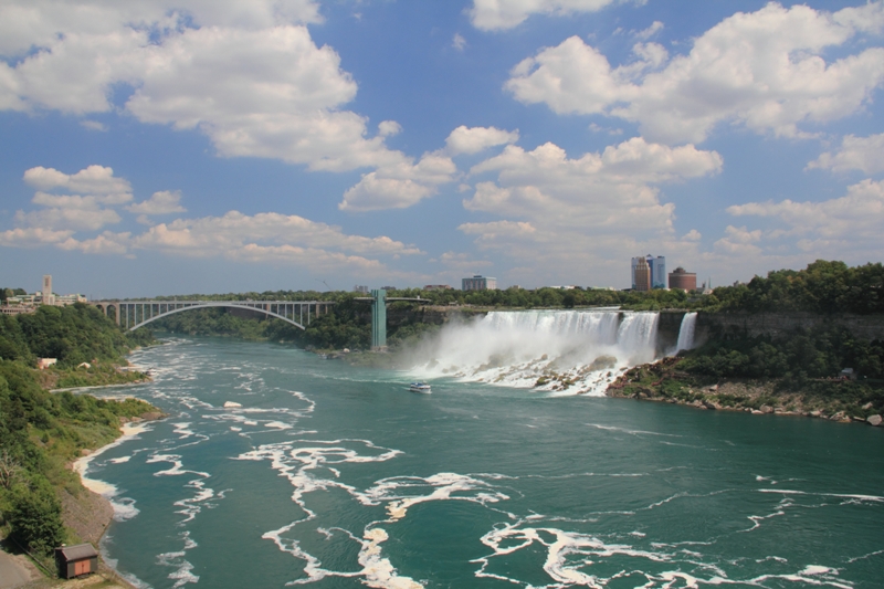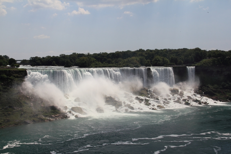 Durch die Nähe und das nur hüfthohe Gitter wirken die Niagara-Fälle noch respekteinflößender. Schließlich reißen wir uns los.
