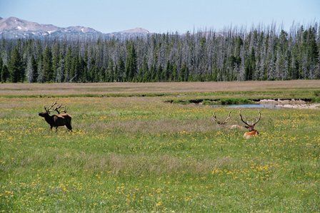 Auf der Fahrt zu unserem Camgr. "Madison CGr.", den ich vorher über das Internet (und mit Scoobys Hilfe -DANKE) reserviert habe , konnten wir weitere Geysire beobachten, sowie Bisons und Wapiti-Hirsche! Schon der erste Tag im Yellowstone war somit voller Eindrücke und hat sich toll gelohnt! Fast waren darüber die Schmerzen und Beschwerden vergessen, aber sie waren noch da, nur nicht mehr so schlimm!