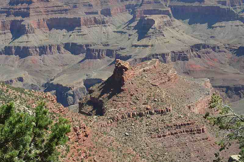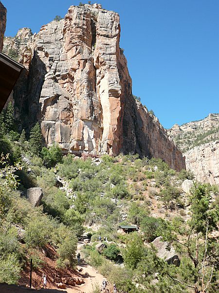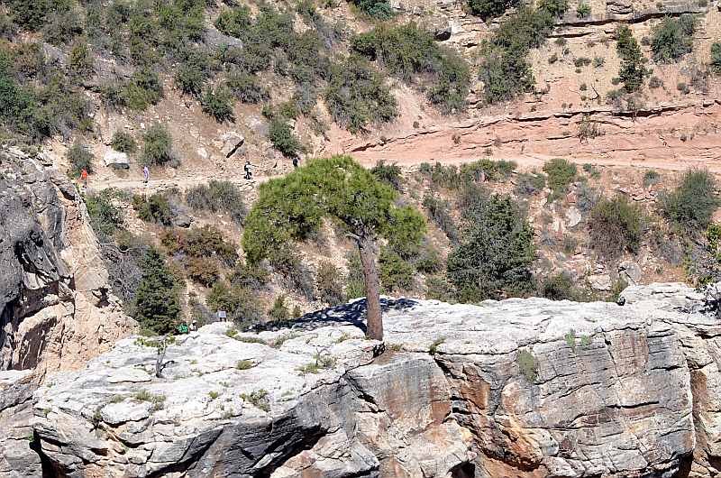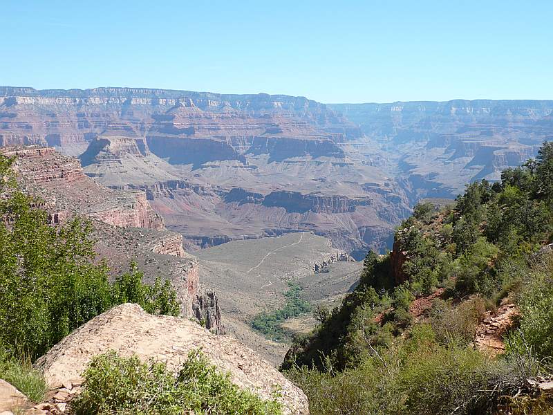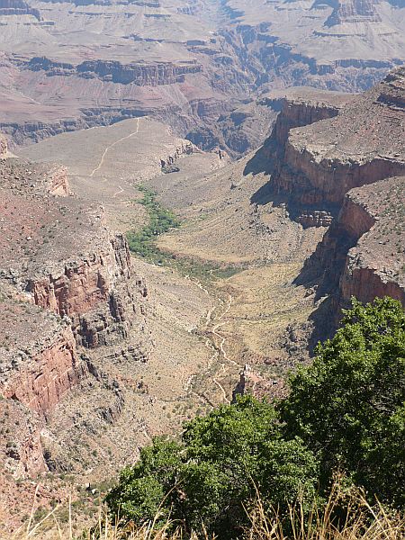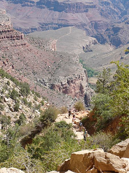 Auch den Bright Angel Trail, den wir uns für den nächsten Tag vorgenommen hatten, konnte man von oben erkennen.