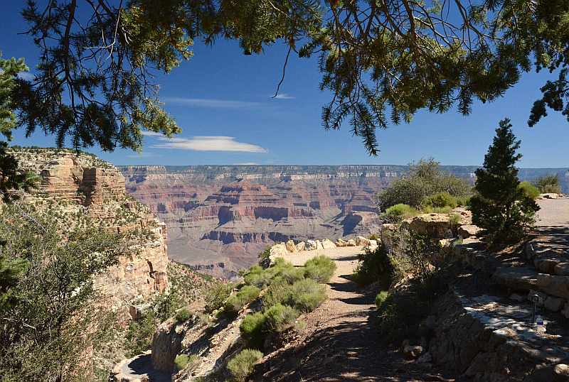 Leider war der Weg für Frank zu steil, er musste nach ein paar hundert Metern umkehren. Schon am Vortag stand er immer weit weg vom Canyon-Rand, während die beiden Frauen in der Familie recht mutig über die Kante schauten. Also machte sich der weibliche Teil der Mannschaft allein an dieses Etappenziel. Nach relativ kurzer Zeit verlief der Weg nicht mehr so sehr am Abhang und wir konnten beruhigt wandern und gucken.