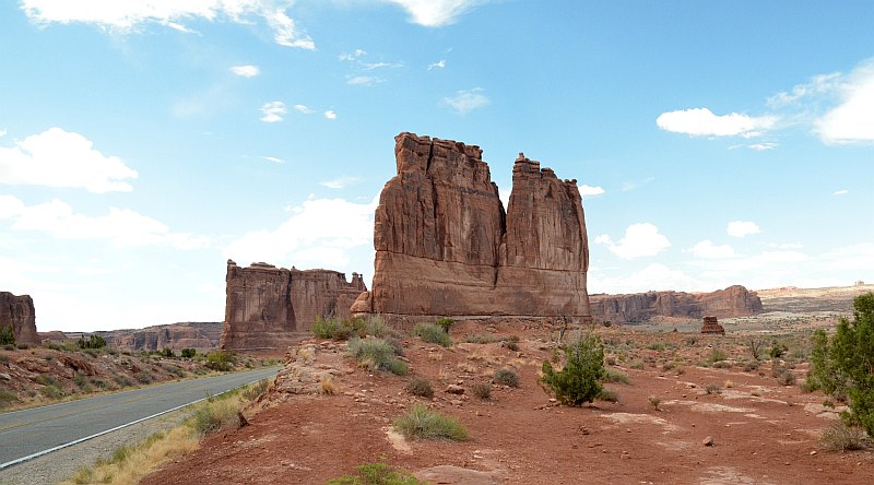 Das Gewitter war inzwischen ziemlich nahe, so dass wir uns – wenn auch widerwillig - gegen den Moki Duckway entschieden. Schade, aber wahrscheinlich sicherer, denn kurze Zeit später war das Gewitter nicht mehr neben, sondern über uns. Also nahmen wir die recht langweilige Fahrt über Bluff in Kauf, aßen kurz in Blanding in einem Truck-Stop und erreichten am späten Nachmittag Moab. Für einen Abstecher zum Canyonlands NP (z.B. zum Needles Overlook) hat unsere Kondition leider nicht mehr gereicht. Unser Hotel (Best Western Canyonlands Inn) war recht teuer aber auch sehr gut, so dass wir nach einem kurzen Besuch einiger Geschäfte in der Umgebung zwecks Auffüllen der Kühlbox zufrieden ins Bett fielen.