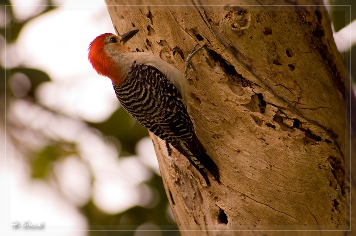 Rotspecht Der Trail machte dann eine Schleife und führte uns auf Brettersteigen in die Landschaft des sogenannten Taylor Slough, einer seichten Wasserstelle, in der das Wasser wegen der Vertiefungen im Doggergestein das ganze Jahr über stehen bleibt.