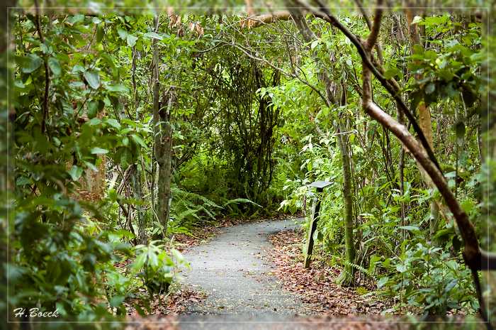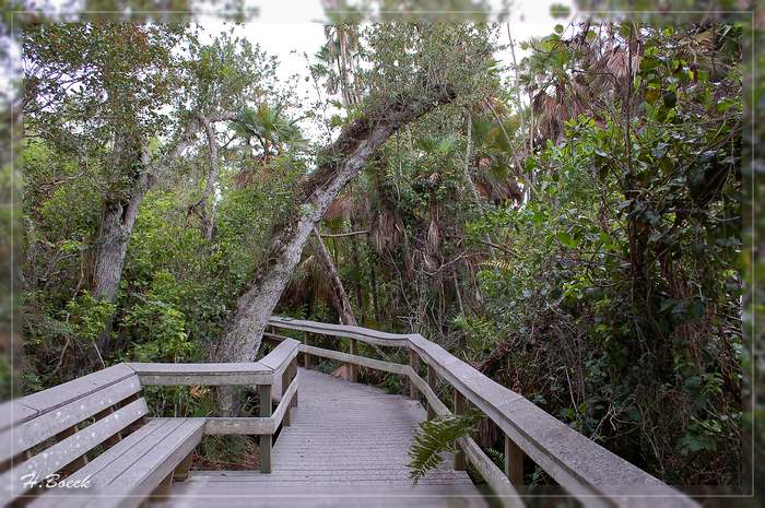 Gleich im Anschluss an den Anhinga Trail liefen wir den Gumbo Limbo Trail. Dieser etwa 800 m lange Pfad windet sich auf schattigen Wegen durch einen Hammock, keine 30 cm höher als das umliegende Grasland.