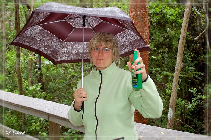 Jetzt, in der Regenzeit, waren hier gefühlte 10000 Moskitos/m³ unterwegs. Trotz Moskitospray summte es pausenlos um uns herum. Nach der Hälfte des Trails ging es nur noch im Dauerlauf weiter, die Viecher waren unerträglich. Diese Anstrengung legte auch meinen harten Husten wieder frei, welchen ich aus Deutschland mitgebracht hatte. Zurück im Auto mussten wir erstmal unsere Wunden lecken.
