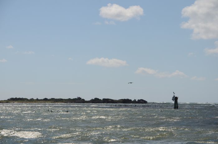 Schwer fiel uns heute der Aufbruch von den Outer Banks, denn – auch wenn es langweilt – die Sonne brachte uns erneut bestes Strandwetter. Doch wir hatten einiges vor uns. Also früh aufgestanden, kurz gefrühstückt und dann ab Richtung Süden. Den ersten Stopp machten wir am Coquina Beach mit dem Bodie Island Lighthouse, wo wir kurz über den Strand spazierten und anschließend den Leuchtturm anschauten. Zu besteigen gewesen wäre der zwar auch, aber nur in Form einer fünfundvierzigminütigen Tour mit einem Ranger. Die Zeit hatten wir leider nicht, hatten wir doch die Fähre in Ocracoke vorgebucht.