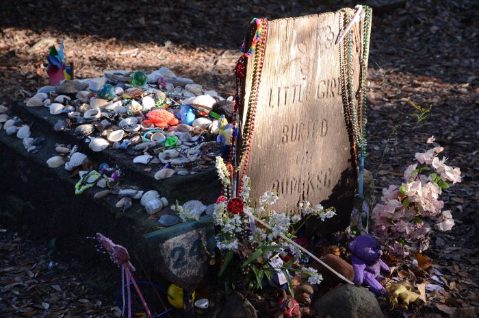 Wieder erfolgreich angedockt fuhren wir auf einsamen und schnurgeraden Straßen durch die Marschlandschaft bis nach Beaufort, einem kleinen Städtchen direkt am Meer, das als Heimat des Piraten Blackbeard Karriere gemacht hat. Wir besuchen das North Carolina Maritime Museum, das keinen Eintritt kostet, spazieren etwas durch den Ort und sind vor allem vom Old Burying Ground begeistert. Dieser Friedhof, an dessen Eingang es eine kleine Broschüre zu gut zwanzig Gräbern und deren Geschichte gibt, besticht zum einen durch eben diese Storys (ein Mädchen, begraben in einem Rumfass; kuriose Todesfälle) und zum anderen durch die verwunschene Atmosphäre mit den uralten Grabsteinen.