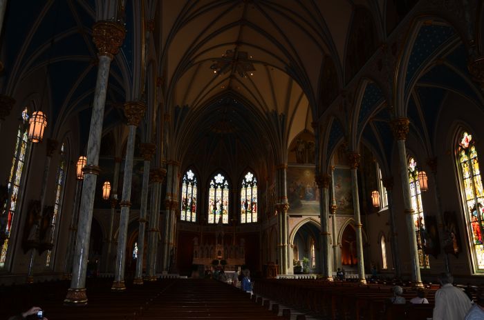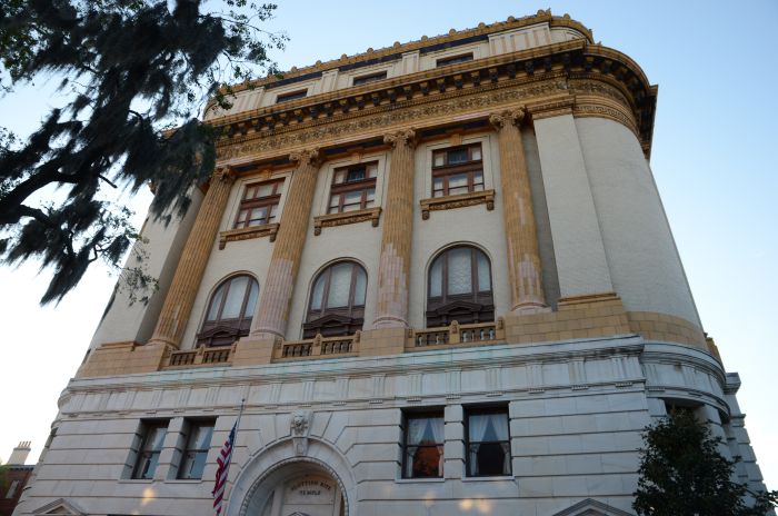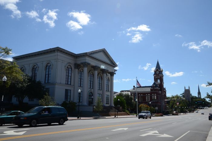 Zwischendurch stoppten wir dann auch an einigen Häusern und haben die dortigen Touren gemacht. Vor dem Mittagessen besuchen wir das Harper-Fowlkes-Haus (dort gibt es immerhin Porzellan von Freund George Washington) und das Isiah-Davenport-Haus. Beide Häuser waren okay, die Führungen aber mit wenig Enthusiasmus runtergeleiert. Nett anzuschauen, aber nach den ganzen Eindrücken der vergangenen Wochen riss uns das nicht mehr vom Hocker. Außerdem besuchten wir noch die Katholische Bischofskirche, die als eine der wenigen vielen Kirchen in der Stadt überhaupt geöffnet war und sehr prunkvoll ausgestattet ist. Die Waterfront und der Riverwalk gefallen uns nicht so sehr, da sieht die Stadt doch teils sehr heruntergekommen aus. Lunch gab es dann im Cafe Clarys, ziemlich Old School und beliebt bei Locals, es gab anständige Sandwiches.