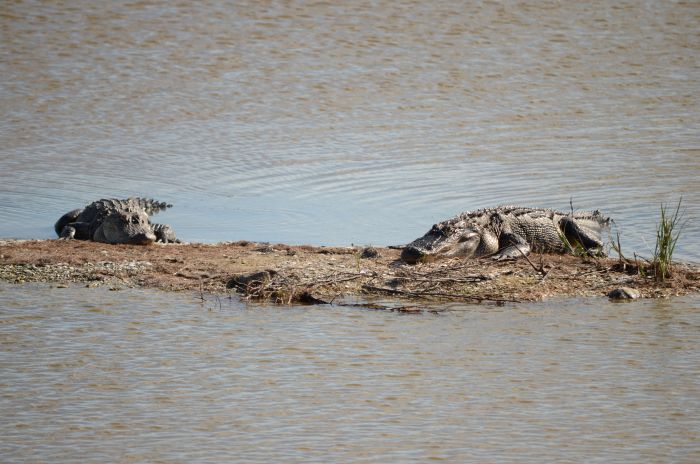 Weiter geht die Fahrt die Küste entlang, vorbei an Myrtle Beach und hinein nach South Carolina zum Huntington Beach State Park. Aufgrund eines Festivals wird kein Eintritt verlangt und wir laufen durch die Salzwasser – Marschlandschaft. Alligatoren soll es da geben und wir sehen tatsächlich gleich drei Stück. Das scheint nicht alltäglich zu sein, so berichtet uns eine Frau, die nach acht Jahren heute zum ersten Mal welche sieht.