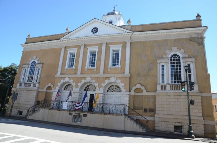 Den ersten längeren Stopp machen wir am Old Exchange Building & Provost Dungeon. Das Gebäude mit seiner wechselhaften Geschichte diente sowohl als Gefängnis für Piraten wie auch als Verlies für Patrioten im Unabhängigkeitskrieg und als repräsentatives Gebäude u.a. für George Washingtons Besuch. Außerdem kann man einen Teil der originalen Ufermauer sehen, die von Archäologen frei gelegt wurde. Bei der Führung erfährt man auch einiges über die Geschichte der Stadt.