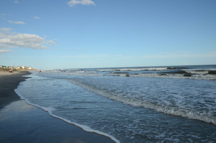 Nach dem Hausbesuch haben wir genug von der Stadt und wollen bei dem schönen Wetter noch an den Strand und fahren deshalb nach Folly Beach. Es dauert zwar etwas einen Parkplatz zu finden, aber dann sind wir erfolgreich und auch direkt am Strand. Entlang der Wellen machen wir einen einstündigen Strandspaziergang und genießen es, wie das Wasser unsere Füße umspült. Zum Abendessen gibt es wenig zu schreiben. Das „Sandcastle“ ist eine Art Seafood – Imbiss, alles fritiert, und das Essen entsprechend. Nun ja, ein Restaurant muss immer auch das Schlechteste der Reise sein.