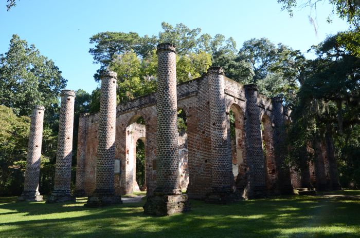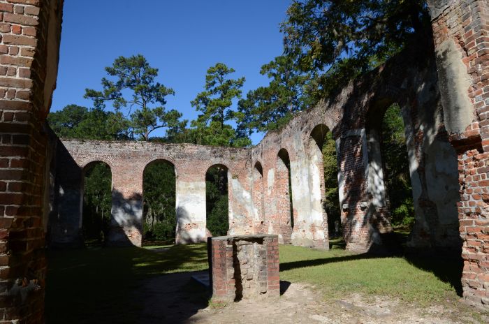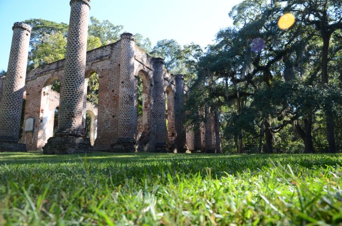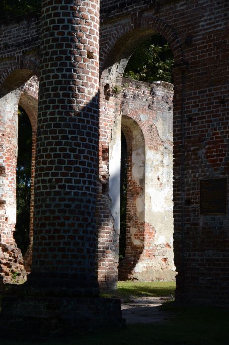 Heute verlassen wir nach dem Frühstück Charleston und machen uns auf den Weg Richtung Savannah. Da das Thermometer bis zu 30 Grad anzeigt, wollen wir auf jeden Fall noch an den Strand und legen deshalb nicht zu viele Zwischenstopps ein. Kurz vor den Old Sheldon Church Ruins nördlich von Beaufort halten wir bei der Carolina Cider Company am Straßenrand und decken uns mit ein paar Sachen zum Lunch ein. Anschließend geht es schnurstracks zu besagten Ruinen, die im Morgenlicht beinahe majestätisch da liegen und uns sehr gut gefallen.