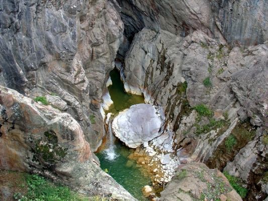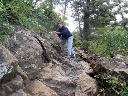 Dann besuchen wir die Ouray Box Canyon Falls, die sich am südlichen Ortsausgang befinden. Nach einem kurzen - aber kniegesundheitsgefährdenden - Trail führt der Weg in eine Art Höhle, in der der Canyon Creek mit viel Getöse durch eine enge Felsspalte bricht.